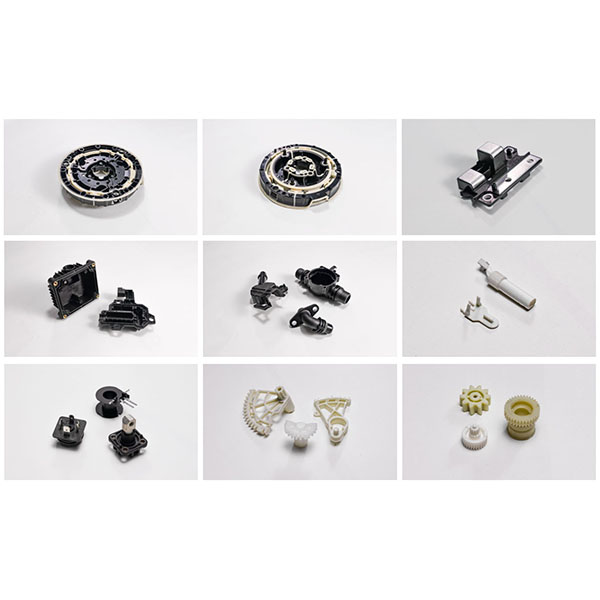 - Peças de precisão: suportes de sensores, buchas guia, engrenagens e controles deslizantes.